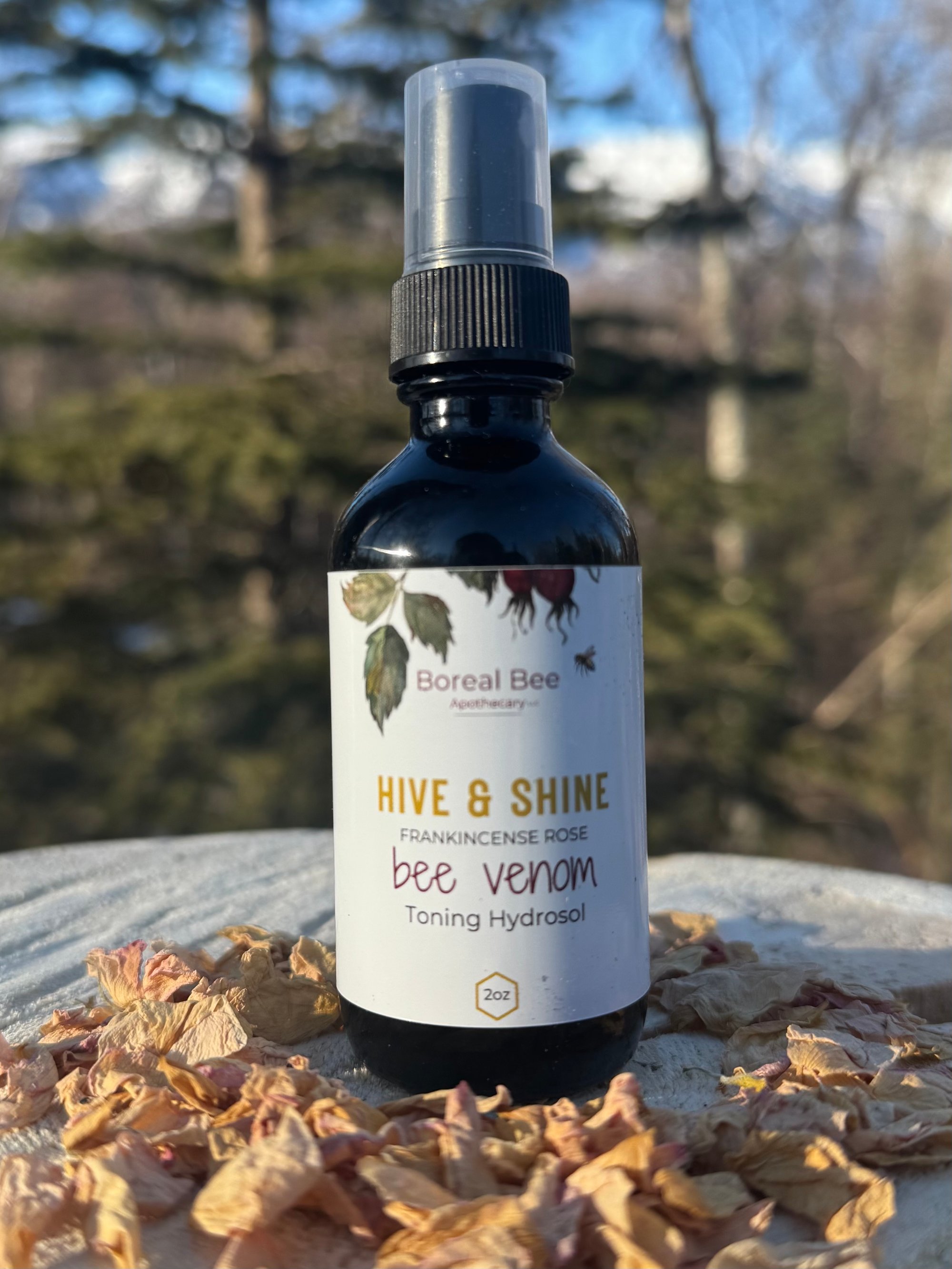 Ingredients: organic rose hydrosol, organic frankincense hydrosol, organic rosemary hydrosol, bee venom (0.1%)